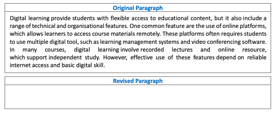 8.      Challenges and limitations in digital learning. Cohesion within a paragraph.